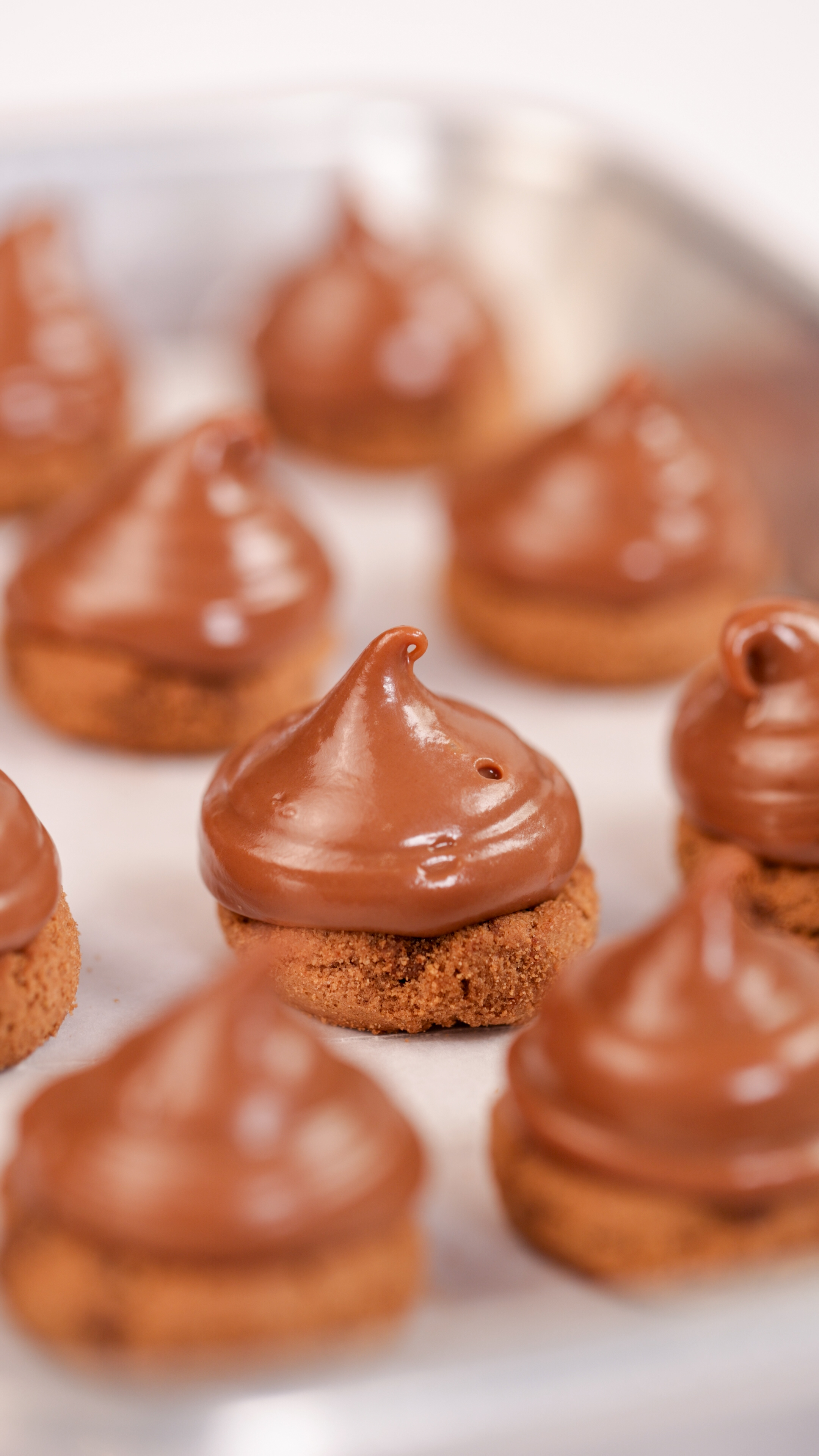 - Agrega el masmelo encima con una manga pastelera, formando un aro y dejando el centro libre. Pon la galleta encima del masmelo.