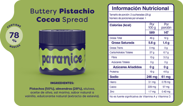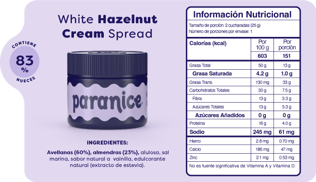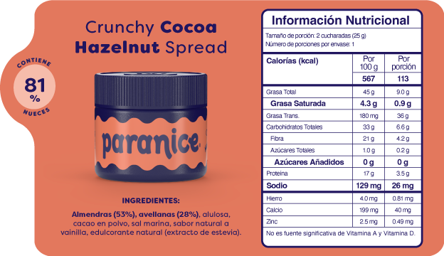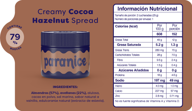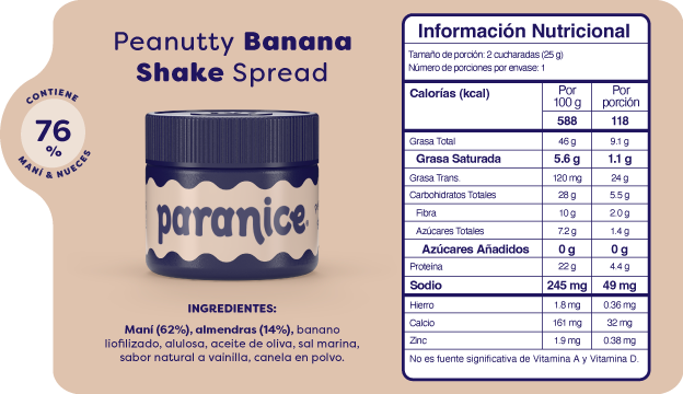 Nuestros Baby Spreads traen 6 sabores diferentes en tamaño mini para que los pruebes todos: Peanutty Banana Shake, Creamy Cocoa Hazelnut, Crunchy Cocoa Hazelnut, Golden Cinnamon Roll, Buttery Pistachio Cookie, White Hazelnut Chocolate. Cada uno contiene 0,88 oz, manteniendo la misma receta y textura de los spreads originales en una presentación en versión baby.